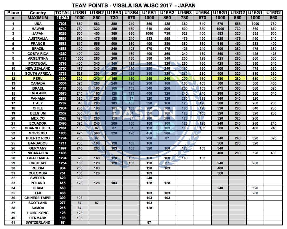 «En el aspecto técnico: existe una buena combinación de madurez en los chicos. Varios han estado en mundiales anteriores, entre ellos; Daniella Rosas, Sol Aguirre, Jhonny Guerrero, Gabriel Vargas (quienes más experiencia han acumulado en los últimos años). Por otro lado, quienes están con muchas ganas de sacar un muy buen resultado son Raúl Ríos, Lucas Pérez Del Solar, Lara Barrios y Alessia Moro, para quienes este será su segundo mundial. Nuestros chicos que participarán por primera vez en un mundial son; Juan Diego Ríos, Amaru Rodríguez, Kalea Gervasi y Arena Rodríguez, surfistas jóvenes con mucho potencial de quienes estamos seguros absorberán mucha experiencia al igual que los surfistas invitados, entre ellos; Carlos Mujica, Cody Gonzales y Luana Chuman“.